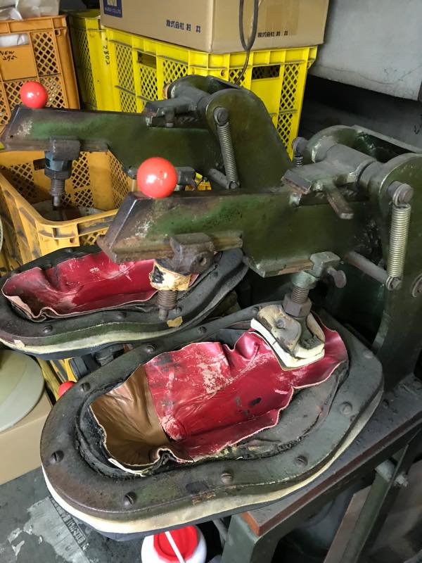 「吊り込み」という木型に合せて靴の形を作っていく工程に手作業ならではの良さが凝縮されてます。この工程をすべて手作業でやるのはまさに熟練した職人のワザ。底側のつま先側から木型に合せて、少しずつ革を引っ張ったり、叩いたりして、中底にアッパーをきれいに付けていき、靴の形を作っていきます。